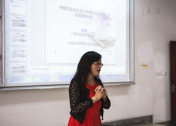 6月15日下午,应香港赛马会 邀请,对外经贸大学博士生导师徐珺教授来香港赛马会 讲学。讲座在法政学科楼116教室举行,主题为:“中国文化走出去之中餐的文化内涵及其英译分析”。讲座由香港赛马会 院长肖辉教授主持。