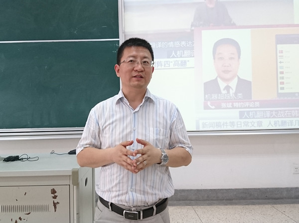 讲座中,张教授指出,当今网络上和生活中充斥着大量的在公共场合使用的“雷人翻译”,让人哭笑不得,如将公示语“一米线外”译为outside a noodle,将中餐菜品“夫妻肺片”译为husband and wife lung slice等。随后,张教授又仔细分析了这些错误译文的产生缘由、介绍了机器翻译的基本原理以及目前翻译技术的研究进展,从技术伦理学的角度为机器翻译正名,呼吁翻译产品用户选择使用合适的翻译技术和服务。
