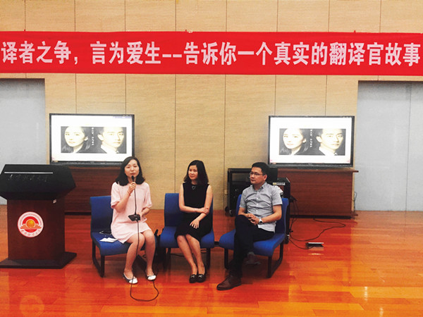 讲座由正在热播的电视剧《翻译官》引出,两位嘉宾分别分析了电视剧剧情中关于翻译职业的误解,并介绍了口译译员的职业训练和崇高使命。讲座中,顾晨瑶老师分享了她在巴黎三大时的翻译学习经验,强调了译员在专业技能、心理素质、理论素养和职业操守等方面的严格要求。张晓明老师在讲座中介绍了他在南京大学的口译教学经验,用亲身经历解释议员在成长过程中的心路历程。两位老师同时指出,翻译不仅仅是语言的交流,更是文化的融合和沟通,“一带一路”的建设和中国文化走出去的进程中,翻译无疑起到了至关重要的作用,是国家软实力的体现。