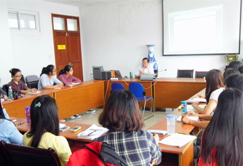讲座中,吕俊教授就目前我国翻译学术研究的困境与出路提出了自己独特的和具有前瞻性的看法。首先,吕俊教授分析了目前我国译学研究的现状与问题,提出目前翻译学科研究最严重的问题是主流或主干思想的缺失;接着探讨了解构主义思潮的影响和遗留的问题,并预测和提供了一条翻译学的未来之路——复杂性科学思想。吕俊教授渊博的知识和独到的见解令在场所有师生深深折服,大家都十分认真地聆听。