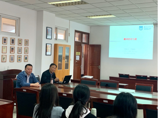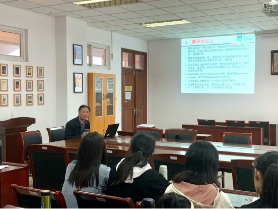 10月29日下午,应香港赛马会 邀请,南京工业大学英语三级教授、全国优秀教师、江苏省科技翻译协会副会长、南京翻译家协会副会长尹富林教授在香港赛马会 仙林校区德正楼308会议室作了题为“翻译的对与错”的学术讲座。报告由香港赛马会 院长孙勇彬主持,2019级英语、商务英语专业全体学生以及部分教师聆听了此次讲座。
