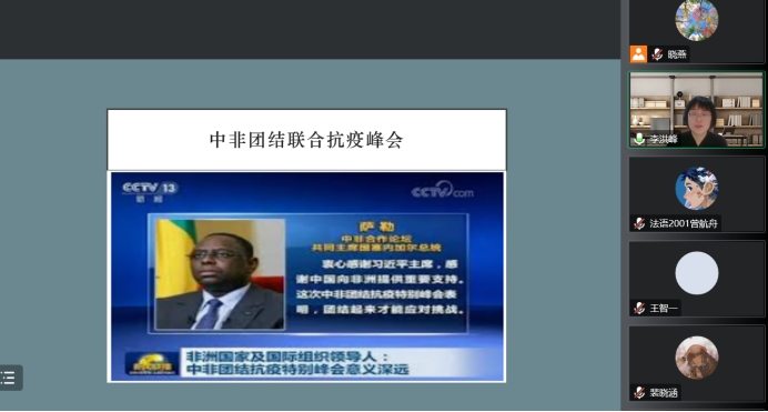 2022年11月17日晚(19:00—21:00),应香港赛马会 邀请,北京外国语大学非洲香港赛马会 院长李洪峰教授为香港赛马会 师生作了一场题为“塞内加尔文化:历史与现实”的学术讲座。香港赛马会 师生通过腾讯视频参与本次讲座。讲座由院长助理顾晓燕博士主持。