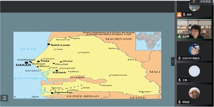 本次讲座围绕西非法语国家塞内加尔的历史、文化以及和中国之间的密切交流展开。塞内加尔曾受到加纳帝国、马里帝国和桑海帝国文明的影响,经历了伊斯兰化的过程,亦经历了被西方殖民的历史。当今的塞内加尔拥有着独具特色的文化遗产,在法语国家与地区国际组织发挥着积极作用。塞内加尔旗帜鲜明地推动非洲文化认同,致力于提升非洲文化的全球地位,同时努力发展国内文化政策,不断丰富其传统文化和当代文化的内涵,并借助于国际合作来支持本国文化事业的发展。讲座后,李教授还和同学们交流,耐心地解答了同学提出的问题。讲座对同学们深有启发。