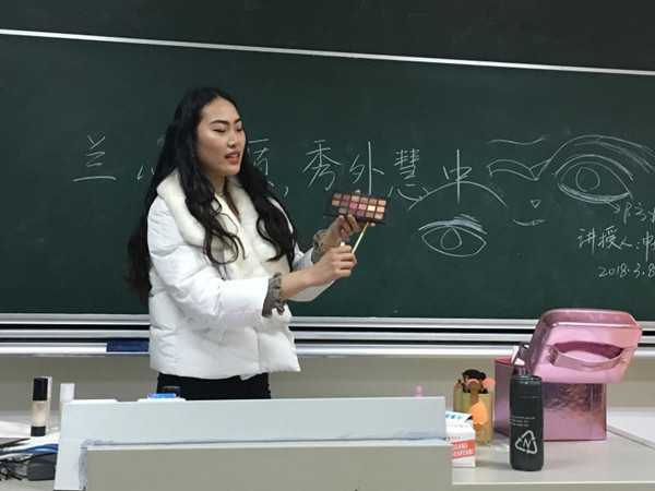 申婧妍所强调的第一点是“make up has no rule”,每个人都有自己喜欢的风格,化妆首先就是要有自信。接着,她介绍了化妆的基础知识,从护肤到遮瑕,从定妆到眼妆、唇妆再到修容,高光。不仅介绍了化妆品的使用方法,还推荐了一些常见的化妆品品牌。