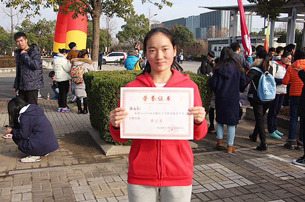 来自法语1601班的陈应花同学第一次参赛就脱颖而出,取得了女子组第三名的优异成绩;英语1602班的张啸和林静也当仁不让,分列男子组第十七名和女子组第十二名;英语1601班的陈红霞和金阳也取得了佳绩,分别获得了女子组第二十八名和男子组第四十名。