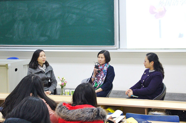 在交流中,顾晨瑶老师说,礼貌是人们生活中的润滑剂,她结合自己在联合国做同传的经历,与同学们交流了许多生活中常见的却很容易被大家忽视的礼仪和形象问题。在谈到守时和公共场合的行为规范时,同学们感触很深,在平时上课、听讲座的时候迟到和不时地低头看手机,过马路时闯红灯似乎已经成了习以为常的现象,而司空见惯的恰恰是平时最需要注意的方面。顾晓燕老师也结合自己在国外的学习和旅行经历,与大家交流了文明礼貌用语使用的必要性。在活动现场,师生们也结合校园公共自行车的文明使用发表了个人的见解。