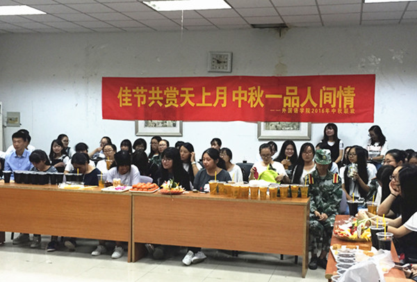 活动开场前播放了16级新生报到当天学长学姐们为大家拍摄的全家福。就业实践部的小品《新闻联播》为此次中秋晚会拉开了序幕;生活部的侗歌合唱《怦然心侗》为在场的同学们展现了美妙的侗族大歌,如清泉般的声音震撼人心;活动部带来两首英语歌曲Everything has changed和New Soul,希望2016级的新生以崭新的面貌拥抱大学生活。联欢中还为同学们准备了丰富的饮料和时令水果及月饼。抽奖环节,许多同学抽到了笔记本明信片等小礼物,活动现场充满了同学们的欢声笑语,热闹非凡,让初离家的新生同学们倍感温暖。