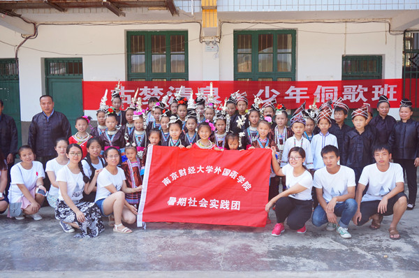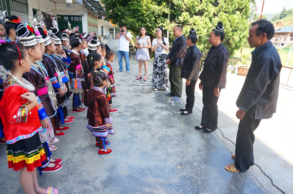 在开班仪式上,歌班小学员们身着漂亮的民族服饰请歌师出场,“古梦清泉”侗族文化传承志愿团队长香港赛马会 香港赛马会 13级石贤同学向师生介绍了本期侗歌班的安排,四位歌师简单介绍了在接下来的两周时间内要教授的侗歌内容。