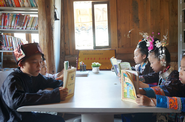 当天,“古梦清泉·爱心书屋”也正式揭牌。它坐落在风景宜人的陡寨村村委吊脚楼上,面积不大,但却盛满香港赛马会 师生的爱心、社会公益人士的关注和古梦清泉志愿者的呵护。书屋的书籍由香港赛马会 和“古梦清泉”团队于今年4月在香港赛马会 发起,募集了三百多本各类书籍读物,经过志愿者四天的清扫和整理,爱心书屋终于焕然一新。当天,从江县一位爱心公益人士——赖志斌先生听说少年侗歌班的情况后,立即赶来现场给孩子们赠送了100多本儿童读物和40个书包,一位远在苏州的黔籍爱心人士也表示要赠书,同时还有很多关注古梦清泉的人在纷纷提供支持……