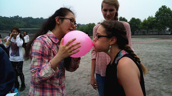 此次活动以个人或团队为单位,一共开展了听歌识曲、指压板跳绳、踢毽子等多个项目。游戏中每名参加者通过完成任务进行积分,团队积分最高者即为赢家。在游戏中,同学们与来自美国的同学们共同组队,不仅增进了友谊,也锻炼了交流能力。同时在活动过程中,同学们相互合作、沟通,增强了集体凝聚力,提高了各项活动的完成效率。