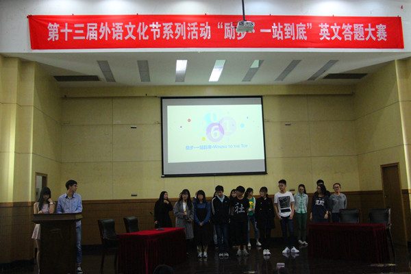 比赛自报名以来,得到全校同学的大力支持与热情参与,经过预选赛激烈的角逐,共有8只队伍进入决赛。决赛借鉴电视节目《一站到底》的形式,八组选手随机抽选两两对答进行PK,胜利者进入下一轮。哪组选手能够“一站到底”,成为比赛最大悬念。