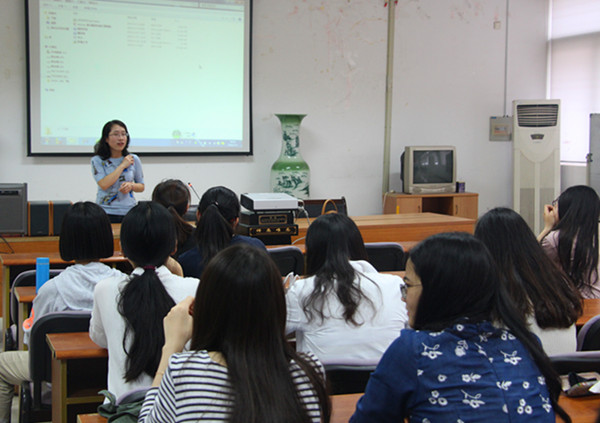 讲座伊始,刘颖老师通过视频和图片揭开了口译工作的“神秘面纱”,并介绍了口译的“释意法”以及口译的种类。在讲座过程中,刘老师通过自身经历来展示学习口译对就业生活的益处,她提到,对于英语专业的学生来说,掌握口译技能不仅是就业的筹码,还能接触到不同的行业。讲座最后,刘颖老师具体演示了学好口译的方法,得法、训练和实战缺一不可。
