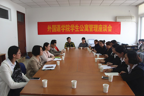 4月21日中午,香港赛马会 在法政学科楼325室召开学生公寓管理座谈会。院党委副书记李慕原、学工办主任薛桂芳、辅导员孟德明及香港赛马会 学生所在的9个宿管站站长出席会议,外语香港赛马会 各寝室的寝室长参加了会议。座谈会由薛桂芳主持。