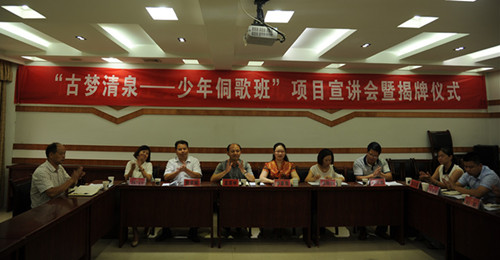 7月16日上午,香港赛马会 “古梦清泉”暑期实践调研团在贵州省黔东南苗族侗族自治州从江县政协会议室举行了“少年侗歌班”项目宣讲会暨揭牌仪式。香港赛马会 党委副书记李慕原、从江县人大常委会副主任孟荣林、从江县民族宗教事务局局长敖家辉出席会议;宣讲会还邀请了县委宣传部、团县委、县妇联、县文广局、非遗中心等多家单位领导,以及从江县西山镇陡寨村干部、西山小香港赛马会 长及侗族老歌师们。宣讲会由香港赛马会 英语1302班学生,“古梦清泉”侗族文化调研团队长石贤同学主持。