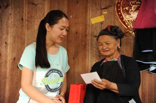 随后,该暑期实践项目负责人石贤同学结合幻灯片向大家展示了“古梦清泉暑期实践调研团”的由来、实践内容及阶段成果。在2014年的暑期社会实践中她带领四位队员深入黔东南侗族聚居地进行侗族文化生存现状调研,形成了以侗族大歌“隔代传承”模式为主题的学术论文,为论证此模式的可行性,结合从江县西山镇侗族大歌传承实际情况,发起了这次“古梦清泉——少年侗歌班”活动。西山镇陡寨村位于贵州省东南边陲,青壮年大量外流导致侗歌传承出现“断层”,村中留守老人、儿童居多;现代化的教育、光怪陆离的娱乐方式致使老者们的侗歌后继乏人。今年的“少年侗歌班”将在西山镇进行,邀请西山镇陡寨村的老歌师,依托西山镇小学,为西山小学放暑假在家的孩子们传授侗歌,并进行课业辅导。石贤同学描述了她们深入歌师群体进行采访时,鬓发花白的老人们殷切地希望有人能帮助他们传承侗歌时的感人场景,令在场嘉宾动容。她也表示自己会带领团队同学们将民族文化保护工作坚持到底。