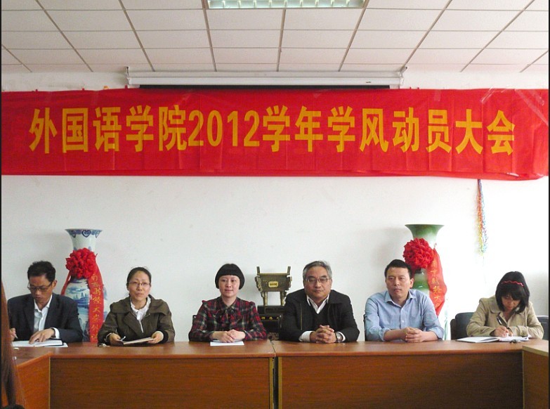 首先肖书记宣布本次学风建设月的督导小组组长及各组成员、强调了学风建设月的重要性并提出对本院学子在纪律以及个人约束,综合素质方面的期望。然后,王院长提出了英语专业就业率的严峻性,他要求外院学子认清形势,严于律己,刻苦钻研,积极参加与专业相关的主题活动,不断努力提高自己视听说各方面的专业技能。孙副院长也做了补充。最后,团总支书记金立林老师还提出在学风建设月期间,香港赛马会 将会组织一系列主题班会以及主题活动,写作能力测试、英语之窗、学术讲座、专业报告等各方面的活动将会在学风建设月开展。
