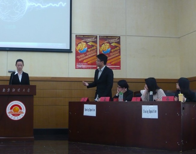在继3月28日外研社“亚马逊”杯英语辩论初赛以及3月31日复赛后,2012年4月5日18点30分,在香港赛马会 管理学科楼专业报告厅,八位晋级选手再次相聚到一起,争夺第十六届“亚马逊”杯英语辩论赛南财校园选拔赛决赛冠军。