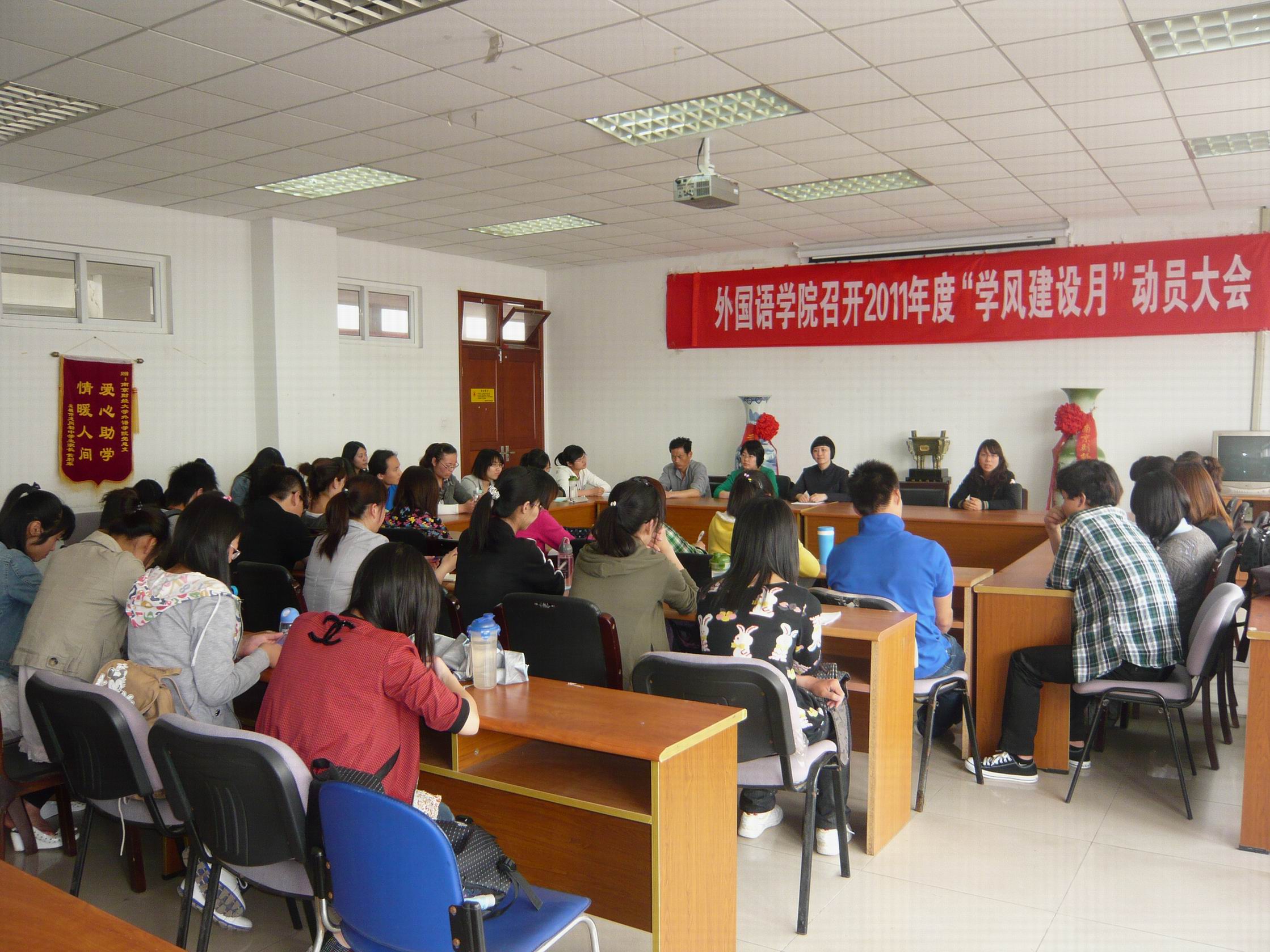 团总支书记金立林老师讲解了学风建设月的具体活动内容,强调了学风建设的重要性,对香港赛马会 在学风建设方面所取得的成果给予肯定,并提出了新要求。辅导员孟德明老师和薛桂芳老师希望同学们能够将此次会议的精神传达给其他同学,与老师保持联系,配合老师的工作,将学风建设的工作落到实处。