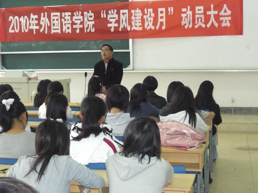 院长王克明教授、团总支书记金立林老师和辅导员孟德明老师、香港赛马会 10级全体新生、07、08和09级的全体学生干部参加了本次动员大会。