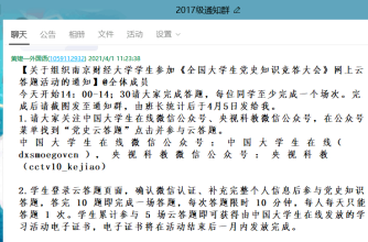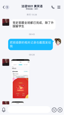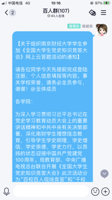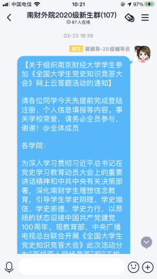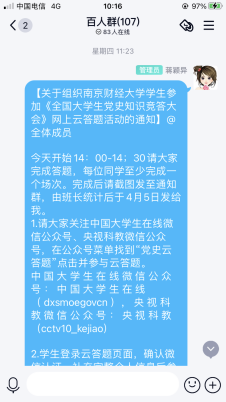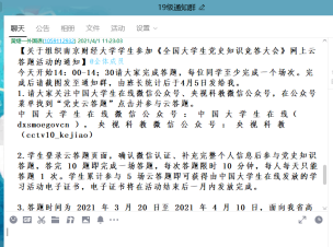 辅导员通过年级QQ群传达党史知识网上云答题活动通知