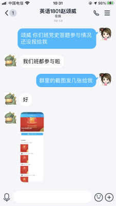 班长反馈班级网上云答题活动参与情况