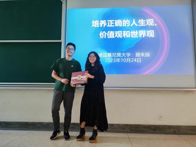 最后,顾博士结合自己及其他中国留学生的心路历程,分享了海外留学带来的收获。顾博士认为在赴德留学的一年,她有了更多思考的空间与时间,在赴德留学的日子里,免去了无效社交,让更多的时间得以放在自己以及未来的生活当中,真真切切地明晰了自己前进的方向与目标,收获了对自己人生的一份宝贵认识,这或许正是在国内大学学习过程中所难以实现的,引起了同学们深刻思考。