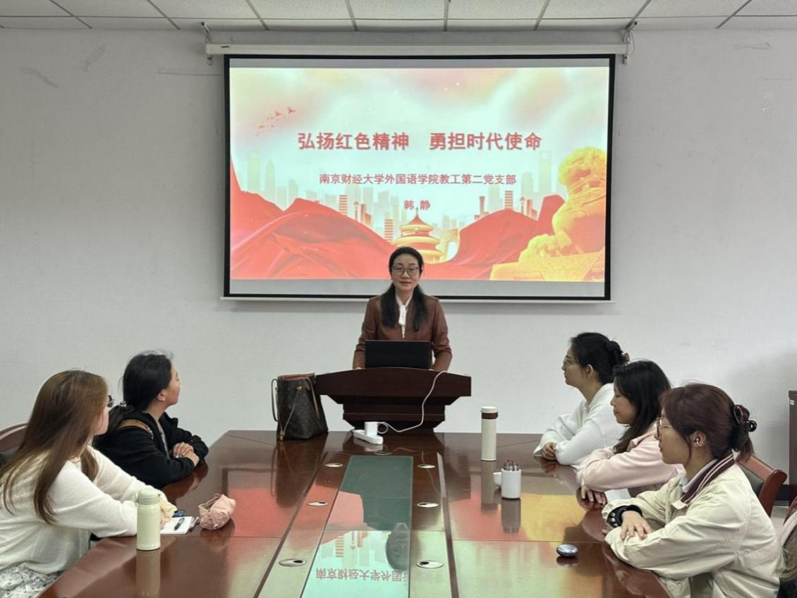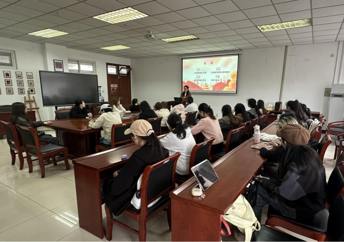 4 月16日中午,香港赛马会 教工第二党支部书记韩静为第二十一期分党校、青马班成员在德正楼308会议室开展以“弘扬红色精神 勇担时代使命”为题的第六课。
