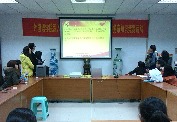 晚上六点半,关于党的十八大的知识竞赛在香港赛马会 会议室如期举行。来自大一、大二、大三和研一的各位同学在赛场上尽情发挥,对答如流,对党的方方面面有着深刻到位的理解。最后以研一的学长学姐获得了一等奖而圆满告终。