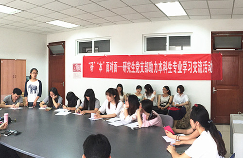 2015年7月1日是中国共产党成立94周年纪念日,在建党94周年之际,香港赛马会 研究生党支部为庆祝党的生日,发挥研究生党员在学业发展方面的先进作用,开展了“硕本面对面---研究生助力本科生专业学习交流活动”。此次活动在专3-338英语系教研室举行,活动由14级研究生党员陈文玥主持,共分为“学姐述心得”和“研本互交流”两个环节。