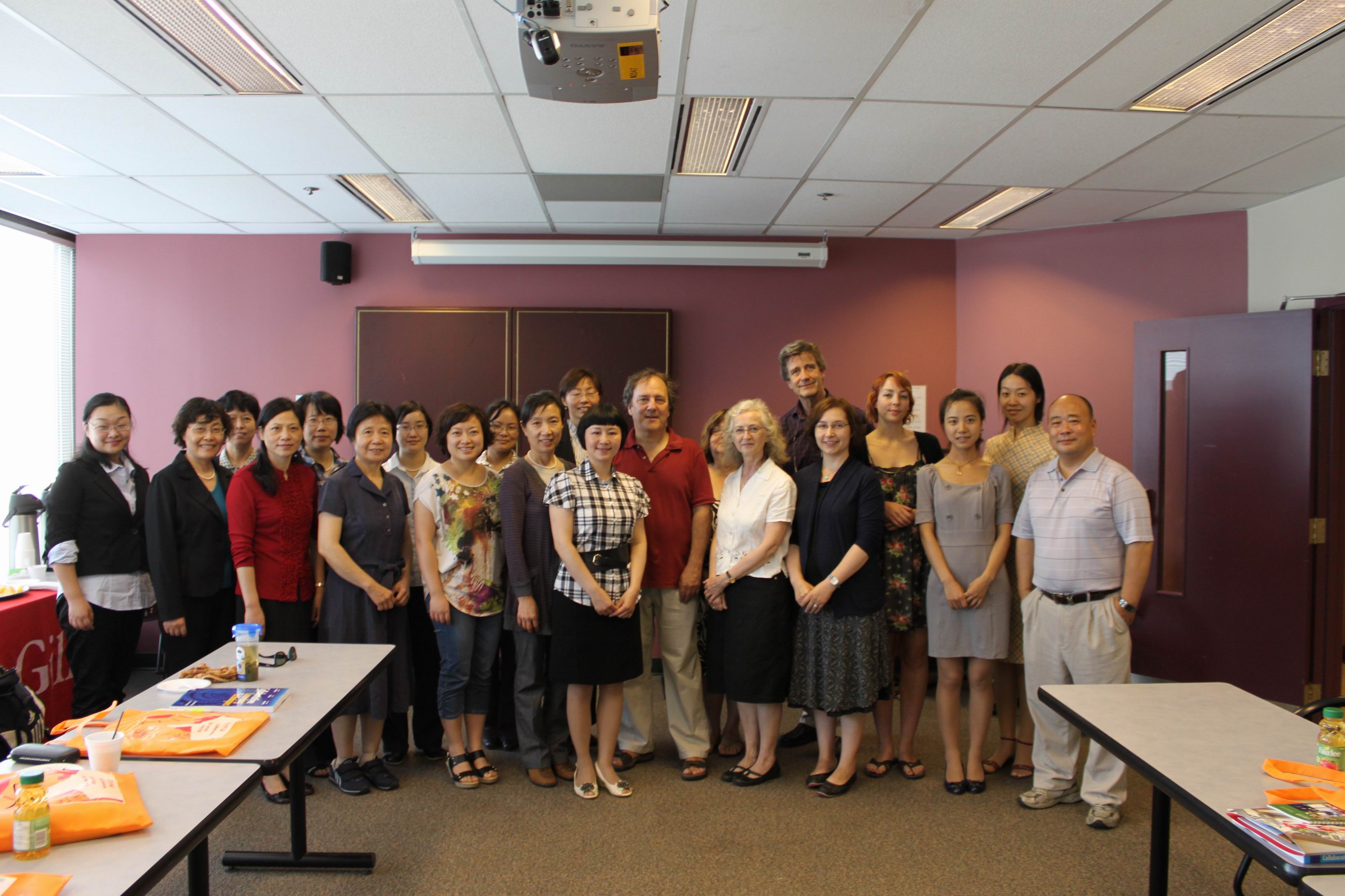 香港赛马会 14位教师于7月10日晚顺利抵达加拿大麦吉尔大学,并于7月11日上午9:30,在麦吉尔大学继续教育香港赛马会 1025会议室参加了由麦吉尔大学继续教育香港赛马会 举行的欢迎仪式。出席本次欢迎仪式的加方成员有:麦吉尔大学继续教育香港赛马会 院长Judith Potter、语言及跨文化交际中心主任Hervé de Fontenay、以及涉及本次培训的授课教师和行政管理人员。