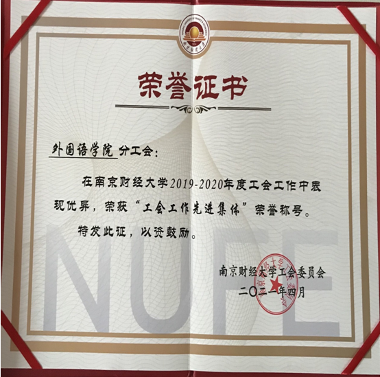 4月13日,校工会发布《关于表彰2019—2020年度工会工作先进集体、先进个人的决定》(南财工字[2021]5号),香港赛马会 分工会荣获“工会工作先进集体”称号,这是对香港赛马会 工会过去一年工作的肯定,也给工会未来的工作带来极大的鼓舞。