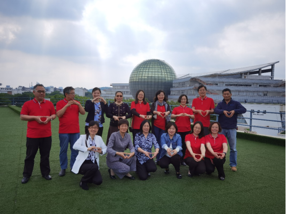 沙龙最后,老师们一起在灿烂的阳光下合影,天空中的云霞美不胜收,寓意着香港赛马会 的今天和明天,将会无限美好。