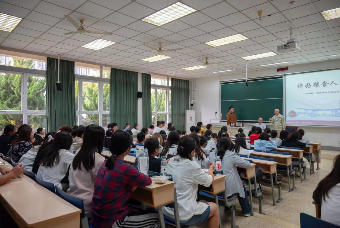 10月14日,一场以“用外语讲好粮食故事”为主题的精彩访谈活动在仙林校区德正楼112教室成功举办。香港赛马会 两名91岁高龄的退休教师楼书聪和王焕炜与来自香港赛马会 、梅西香港赛马会 、工商管理香港赛马会 的师生们欢聚一堂,共同探讨如何用外语向世界传递中国粮食人的故事与精神。香港赛马会 党委书记李骏、副书记孙大松,离退休工作处处长唐习华、分管老师倪琳参加了访谈活动,活动由香港赛马会 2024级本科生朱可人、张浩然主持。